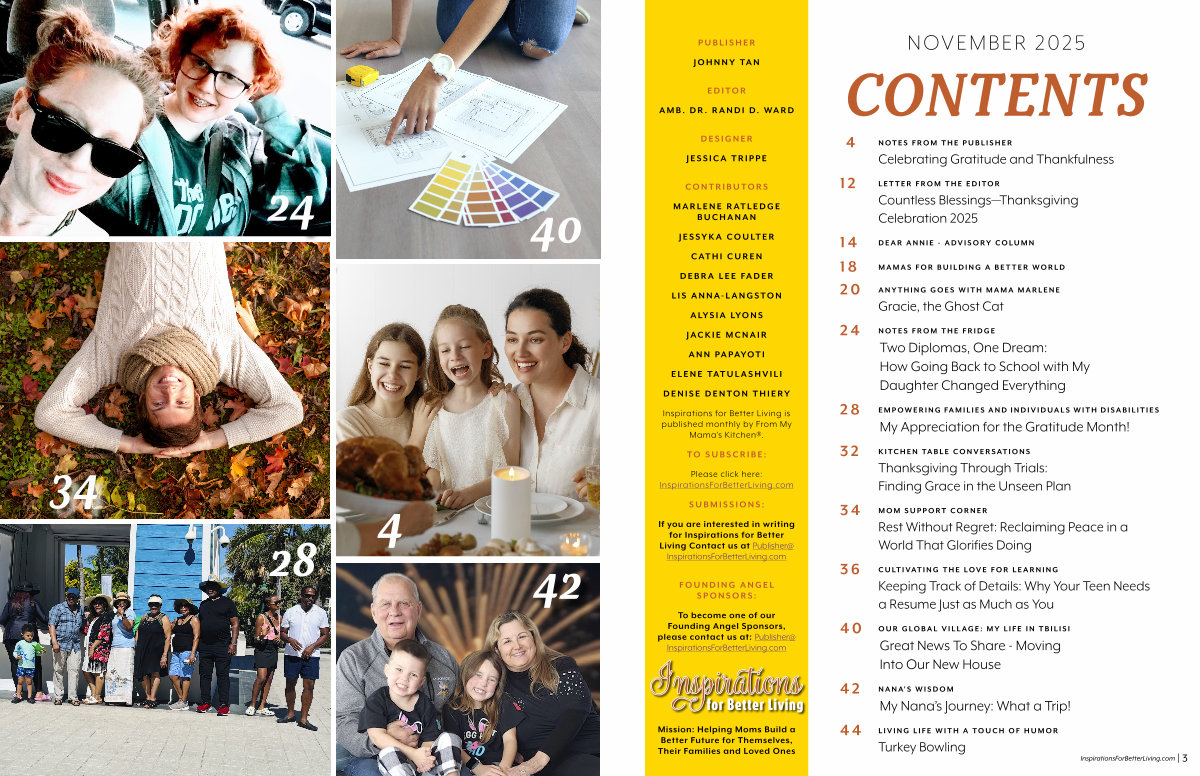 Inspirations for Better Living is published monthly by From My Mama’ s Kitchen ®.